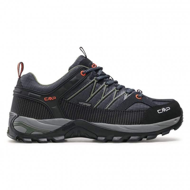 CMP Rigel LOW to buty trekkingowe z charakterystycznymi kolorowymi detalami, które przyciągają wzrok utrzymując sportowy design. Autorska membrana ClimaProtect®, zapewnia całkowitą wodoodporność i wysoki stopień oddychalności, umożliwiając wędrówki praktycznie o każdej porze roku. Podeszwa oparta o technologię CMP FullOn GRIP, sprawia że but bardzo dobrze trzyma się na różnych rodzajów podłoża. Buty RIGEL posiadają wbudowany stabilizator kostki. Dzięki temu kostka ma usztywnienie i podparcie, co chroni przed przemieszczaniem się podczas chodzenia po nierównych terenach. W celu wzmocnienia konstrukcji i zwiększenia wytrzymałości użyto materiał Kevlar, który otacza dolną część cholewki. Jest to jedno z najtrwalszych tworzyw, którego włókna są odporne na rozciąganie. Wzmocniona konstrukcja palców minimalizuje ryzyko odniesienia bolesnej kontuzji i uszkodzenia cholewki. W podeszwie buta zastosowana została lekka, elastyczna i sprężysta pianka EVA (Ethylene-Vinyl-Acetate) w technologii Ortholite wspomaga dopasowanie i amortyzację stopy. Poprawia również cyrkulację powietrza, w trosce o komfort stóp podczas długich wędrówek. Dodatkowe wzmocnienie z TPU zostało zastosowane w tylnej części podeszwy w celu zwiększenia stabilności i podparcia dla stopy.