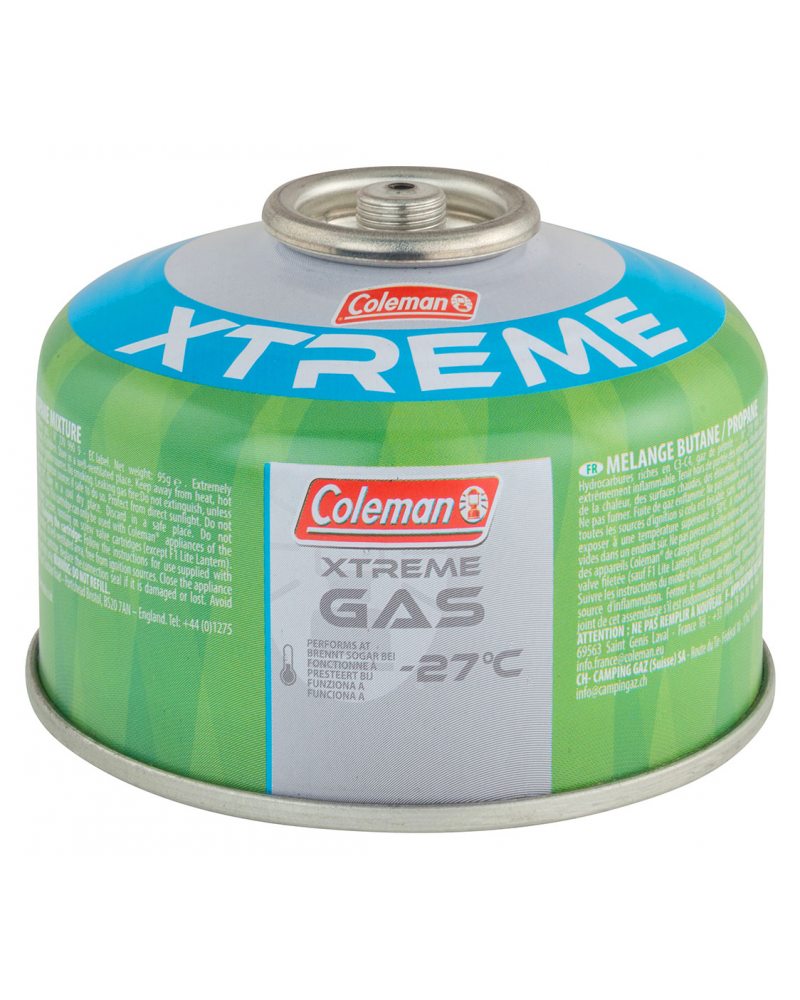 Kartusz gazowy Coleman Extreme Gas C100 z zaworem umożliwiającym wielokrotne połączenie lub rozłączenie z kuchenką. Uniwersalny gwint nakręcany pasuje do kuchenek Coleman, GoSystem, Primus, Merkill, MSR, Jetboil itp. Dla lepszej wydajności również w okresie zimowym wypełniony mieszanką gazów (230 g mieszanki propan 40%, butan 60%). Wysokokaloryczna mieszanka gazów propan/butan gwarantuje dobre spalanie i skraca czas podgrzewania. Mieszanka w stosunku 40/60 gwarantuje dobre parowanie gazu nawet w niskich temperaturach. Możliwość uruchomienia kuchenki w temperaturze do -27°C. Polecany na zimowe wyprawy wysokogórskie. Gwint jest kompatybilny z popularnymi na rynku kuchenkami turystycznymi oraz lampami wykonanymi w standardzie EN 417.