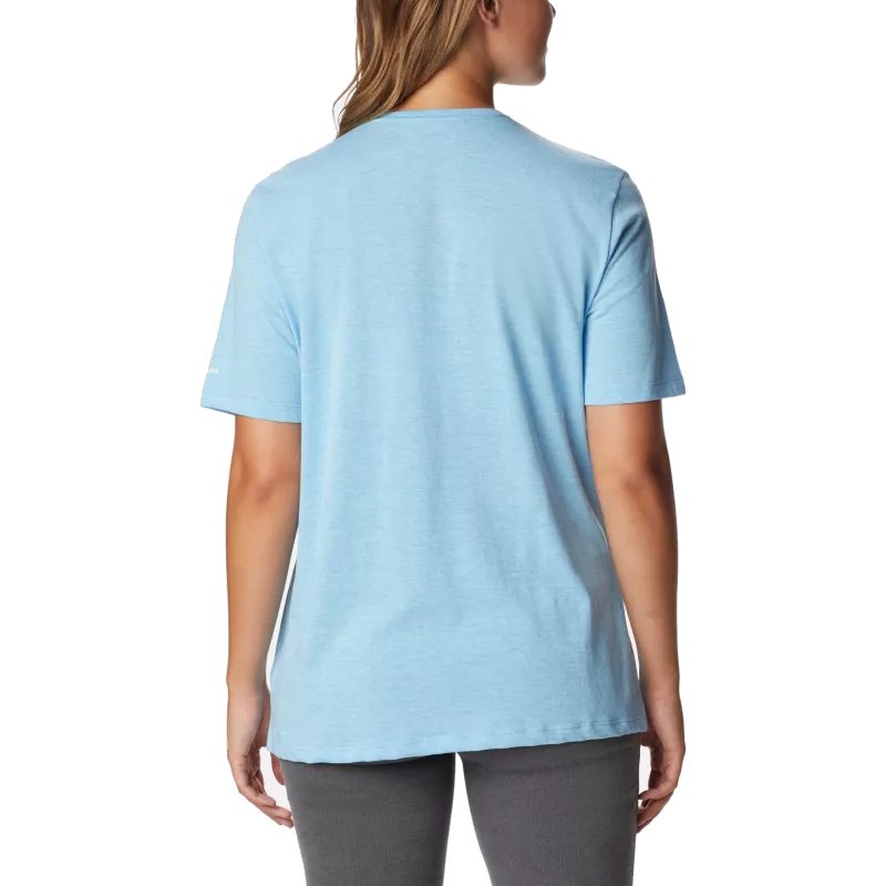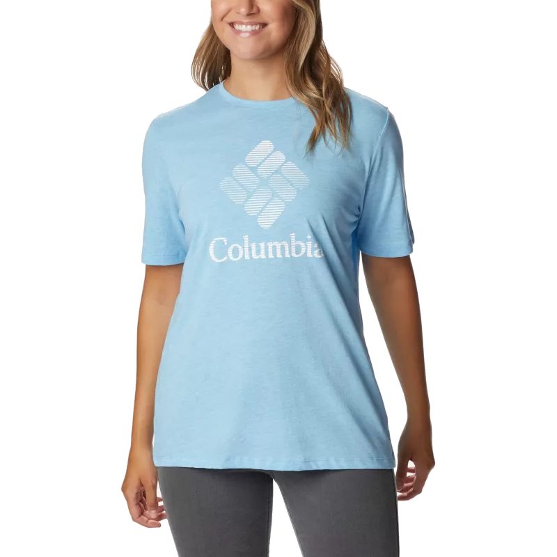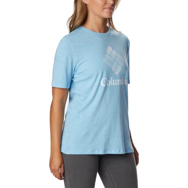 Bluebird Day™ Relaxed Crew Neck to damska kosztulka, idealna na słoneczne dni. Wykonana z miękkiej mieszanki bawełny, charakteryzuje się luźnym krojem z okrągłym dekoltem i kobiecą wersją logo marki.