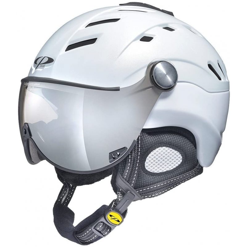 Kask narciarski CP Fashion CAMURAI to pierwszy model stworzony przez CP Fshion, który udoskonalono z sezonu na sezon. Fantastyczny sportowy kształt i najnowsze rozwiązania techniczne to marzenie każdego narciarza. Innowacyjna technologia kasku z wbudowanym visorem pozwala na noszenie okularów korekcyjnych w trakcie jazdy na nartach. Visor gwarantuje szerokie pole widzenia, otwierając tym samym nowe możliwości w zakresie czystości obrazu i widoczności. Wyposażony w odczepiane nauszniki, system umożliwiający dopasowanie do obwodu głowy, system przepływu powietrza oraz łatwy do wymiany visor. W zestawie znajduje się woreczek chroniący przed kurzem oraz miękka szmatka do czyszczenia powłoki kasku. Visor: orange silver mirror, absorpcja światła: 62%, transmisja światła widzialnego: 38%, poziom ochrony: S2.
