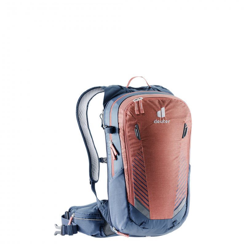 Plecak rowerowy Deuter Compact EXP 14 korzysta z systemu nośnego Deuter Airstripes Carry System. Tym, co go cechuje, to dwa pionowe elementy, które zostały wykonane z pianki z podszewką Wide AirMesh. Takie rozwiązanie umożliwia odpowiednią cyrkulację powietrza. Plecak rowerowy Deuter Compact EXP 14 na klasyczną budowę, z jedną komorą główną. Dostęp do niej jest możliwy od góry, poprzez odpięcie zamka błyskawicznego. Wewnątrz wydzielono kieszeń na system nawadniający. Część z ekwipunku z powodzeniem umieścisz w kilku dodatkowych kieszeniach. Dwie z nich, wykonane z siateczki stretchowej umieszczono po bokach. Kolejne dwie, zabezpieczone zamkiem, znajdziesz na pasie biodrowym. Wreszcie, na przednim panelu znajduje się praktyczna komora zamykana zamkiem. Pozwoli na właściwe ułożenie sprzętu niezbędnego podczas górskich przejażdżek na rowerze. Model niemieckiej marki Deuter wyróżnia się tym, że posiada dodatkową kieszeń mieszczącą w sobie smartfona. Umieszczoną ją na dole przy plecach. Plecak posiada w zestawie zintegrowany pokrowiec przeciwdeszczowy.