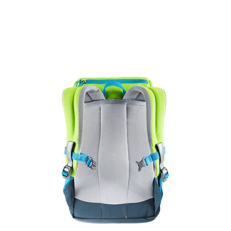 Plecak dziecięcy Deuter Schmusebar cechuje się przyjaznym dla oka designem. Wykonany został z wykorzystaniem przyjaznej dla oka kolorystyki, a także ciekawych postaci. Dzięki temu mały odkrywca będzie chętnie wybierał ten model na towarzysza swoich pierwszych krótkich wędrówek. Całość zapinana jest na jedną klamrę oraz ściągacz, tak aby zapewnić łatwość obsługi modelu. Ponadto całość wykorzystuje również elementy odblaskowe, które zwiększą widoczność malucha podczas wieczornego powrotu do domu. Całość posiada także dwie kiszonki na butelkę oraz zapinaną kieszonkę na drobiazgi. Model ten przeznaczony jest dla dzieci od trzeciego roku życia. Tył plecaka dziecięcego Deuter Schmusebar został odpowiednio wyprofilowany i wypełniony miękką pianką, dbająca o oddychalność.