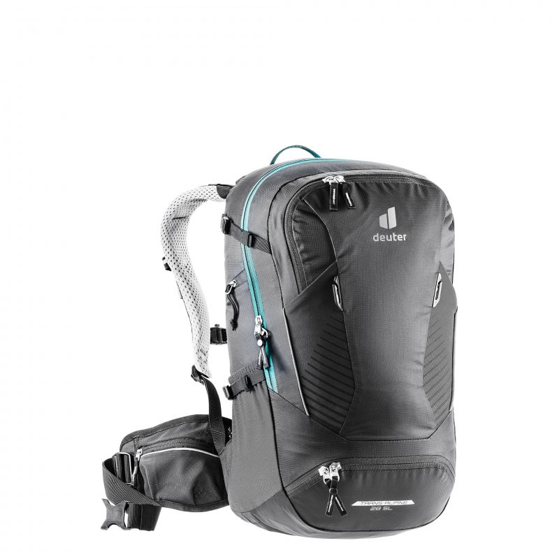 Plecak damski Deuter Trans Alpine 28 SL doskonale sprawdzi się w czasie rowerowych wypadów. Materiał cechuje się bardzo dużą wytrzymałością mechaniczną oraz zwiększoną odpornością na przetarcia, dzięki czemu dzielnie oprze się trudnościom napotkanym na wąskich ścieżkach i górskich szlakach. Główną komorę można podzielić na dwa kompartmenty. Alternatywny dostęp od dołu zabezpieczono suwakiem. Wewnątrz komory znajduje się kieszeń na bukłak do maksymalnej pojemności wynoszącej trzy litry – taka ilość płynów powinna spokojnie wystarczyć na średniej długości górski maraton. Na przednim panelu przewidziano specjalną strefę do przenoszenia kasku. Dwie boczne kieszenie stretchowe z elastycznym wykończeniem pomieszczą żele i batony energetyczne lub butelkę z napojem. Niezwykle praktyczna jest również łatwo dostępna kieszonka z suwakiem idealna np. na smartfon. Chowana karimata stanie się nieocenioną pomocą podczas postojów i odpoczynków. Plecak posiada też pokrowiec przeciwdeszczowy w jaskrawo żółtym kolorze.