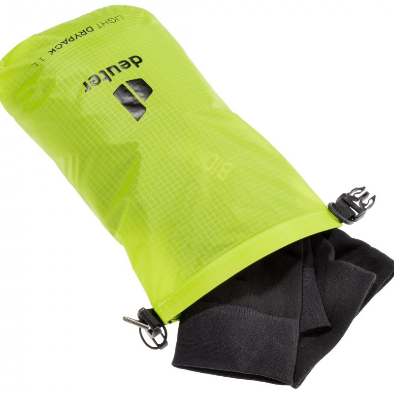 Deuter Light Drypack 1 to niewielki worek wodoszczelny, który pomieści najważniejsze drobiazgi, które muszą być chronione przed wodą. Idealnie sprawdzi się na dokumenty czy telefon w czasie deszczowej pogody.
