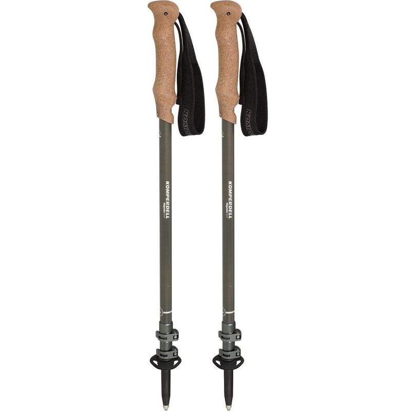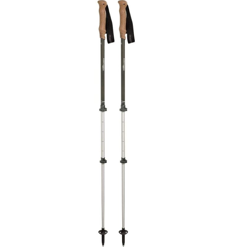 Solidne, aluminiowe kijki trekkingowe o regulowanej długości. Model został wyposażony w wygodny korkowy uchwyt i wyściełany pasek.
