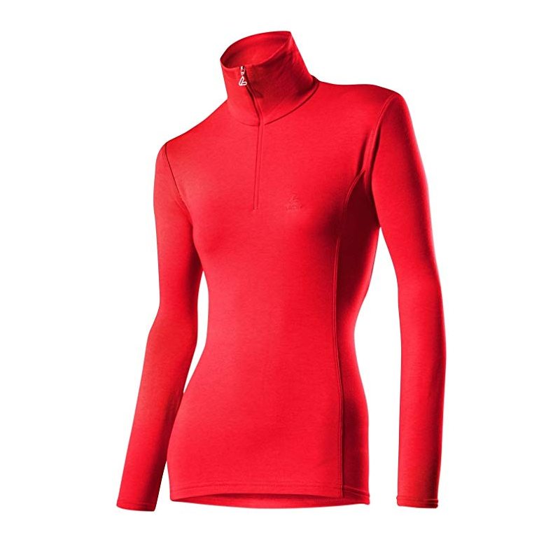 Koszulka damska marki Löffler z elastycznego, szybkoschnącego materiału, który idealnie odprowadza wilgoć. Posiada kołnierz, krótki zamek z przodu i długie rękawy.