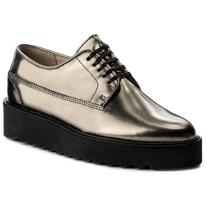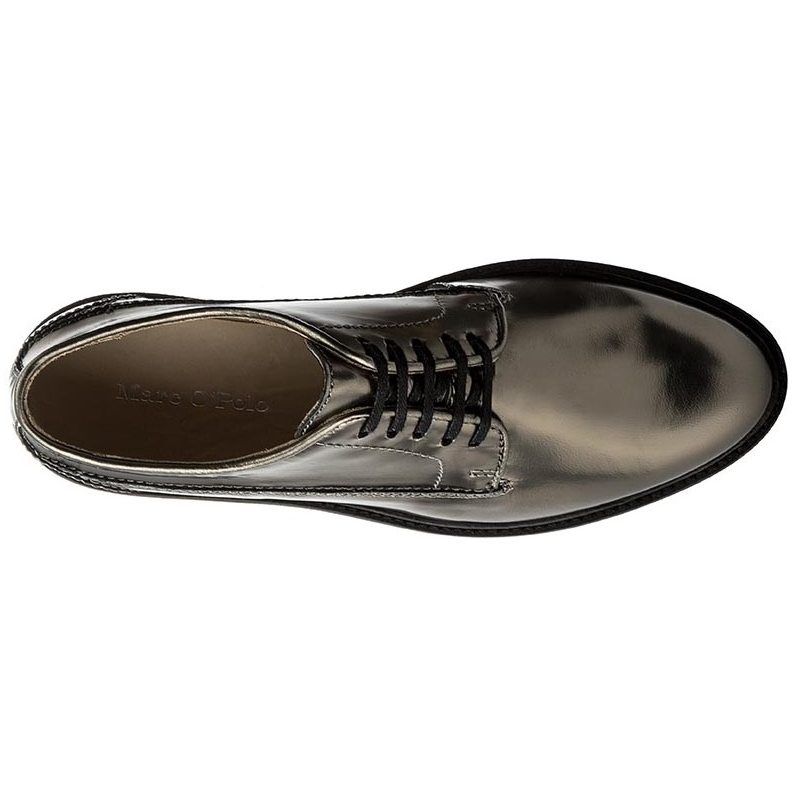 Złote Oxfordy marki Marc O'Polo. Cholewka butów została wykonana ze skóry naturalnej - licowej. Wnętrze posiada właściwości oddychające dzięki skórze. Wkładka to również skóra. Podeszwę wykonano z wysokogatunkowego tworzywa. Buty wysmuklają sylwetkę a także pasują do różnych stylizacji.