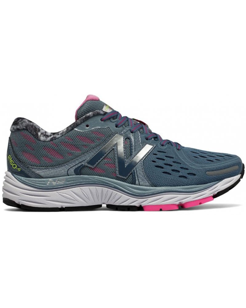 New Balance W 1260 GP6 to wyjątkowo lekki but do biegania. Cholewka buta wykonana jest z bardzo lekkiej i przewiewnej błękitnej siatki. Zapewni to świetną wentylację oraz odprowadzanie wilgoci z wnętrza buta. Tylna część buta jest dodatkowo wzmacniana. Logo firmy jest w kolorze niebieskim i srebrnym. Za stabilność stopy odpowiedzialne są turkusowe niebieskie z różowym paskiem po środku. Wyściółka jest wykonana z bardzo designerskiego biało czarnego materiału. Elementem najbardziej ułatwiającym bieg jest wyposażona w liczne technologię podeszwa. Jest ona wyższa na pięcie dzięki powietrznej poduszce widocznej od spodu. Dodatkowo środkowa część stopy jest wzmacniana co zapobiega kontuzjom. Duża ilość bieżników ułatwia skrętność oraz przyczepność do podłoża. Mieszanka kolorów wykorzystana do zaprojektowania podeszwy dodaje butom dodatkowego designu.