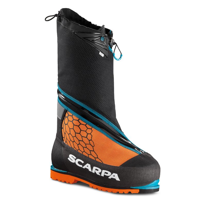 Buty wysokogórskie Phantom 8000 to najnowsza odsłona tego modelu Scarpy w klasie mocno ocieplonych butów, stworzonych do eksploracji najwyższych szczytów gór wysokich. Model wyposażono w wodoszczelny, membranowy materiał OutDry z wstawkami stretchowymi K-Tech Fabric, ułatwiającymi dopasowanie do stopy użytkownika. Botek buta został wykonany z pianki Eva pokrytej dwiema warstwami termorefleksyjnego aluminium i wewnętrznym wyłożeniem Primaloft. Dodatkowo, system wiązania Fast Lock gwarantuje szybkie i pewne wiązanie dzięki specjalnemu suwakowi, pozwalającemu na precyzyjne i szybkie ściąganie mocnych sznurowadeł. Dzięki zastosowaniu antybakteryjnego materiału Cocona zastosowanego w botku, podczas intensywnego wysiłku fizycznego i wielodniowego użytkowania buty zapewniają komfort poczucie świeżości.