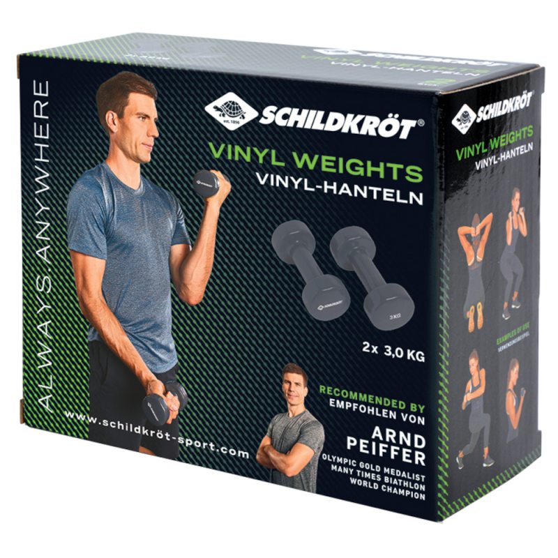Hantle winylowe renomowanej niemieckiej firmy Schildkröt Fitness wykonano z najlepszej jakości materiałów, dzięki czemu nie niszczą się i doskonale sprawdzą się podczas długotrwałego intensywnego treningu.