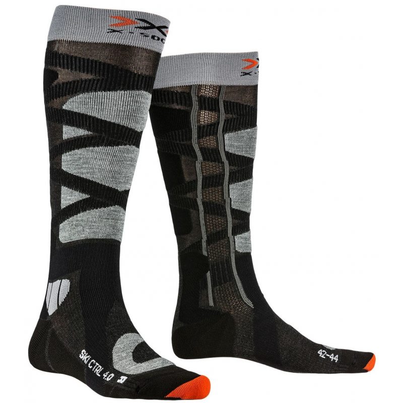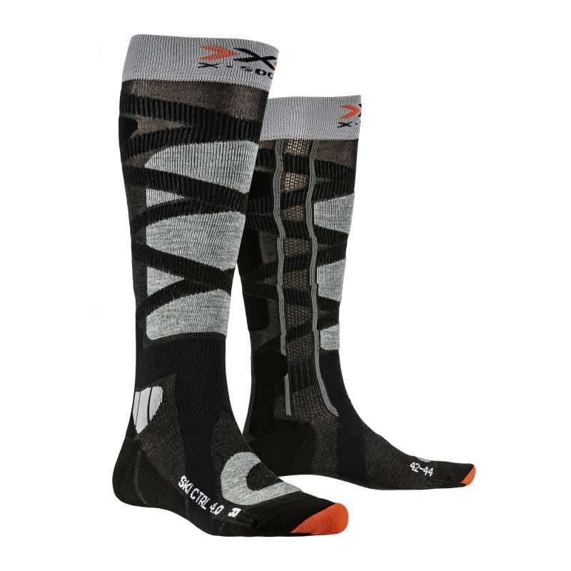 Skarpety Ski Control to więcej ciepła, więcej mocy i więcej przyjemności podczas uprawiania sportów zimowych. System kanałów wyprowadza ciepło w kontrolowanym stopniu zapewniając optymalną temepraturę. Drobna dzianina odprowadza wilgoć pozostawiając stopy suche. Bardzo elastyczna taśma zapewnia pewne dopasowanie i wsparcie bez ograniczania ruchu, a innowacyjna wkładka przeciwdziała przeciążeniu stawu skokowego wspierając przy tym zdrową postawę stopy. Konstrukcja skarpet X-Socks dzięki ochraniaczowi na pięcie, wzmocnieniach na czubku stopy i dostosowaniu do asymetrycznych palców skutecznie chroni przed otarciami, naciskiem i pęcherzami. Ścięgno Achillesa leży pomiędzy 2 poduszkami i jest w ten sposób chronione przed naciskiem i tarciem. Wzmocnienie z przodu skarpety zapobiega naciskowi i wstrząsom wrażliwego przodu kości piszczelowej. Anatomicznie ukształtowana wyściółka amortyzuje kostkę i zapewnia maksymalną ochronę. W strukturze skarpet zintegrowano dwie koncentryczne, spiralne wstęgi uciskowe, które otaczają mięśnie łydek od kostki do kolana. Skutecznie wspiera mięśnie, a krążenie krwi nie jest utrudnione.